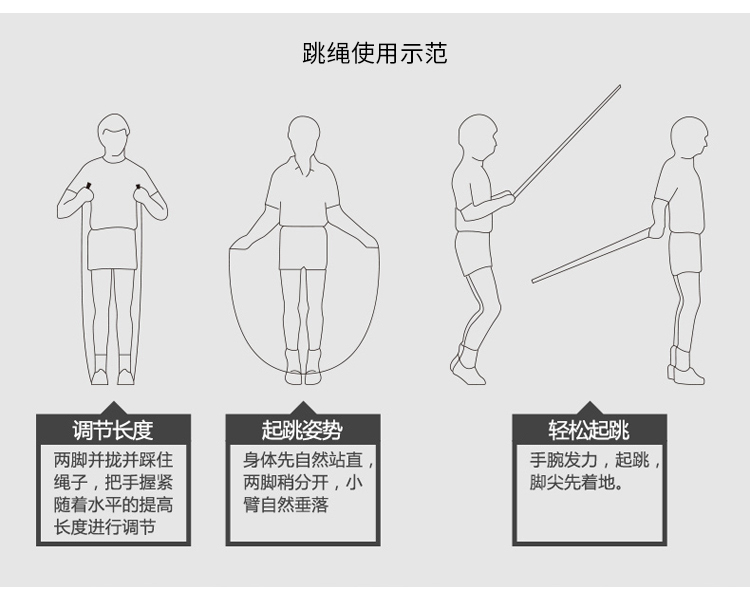 1.跳繩者應穿質地軟、重量輕的高幫鞋,避免腳踝受傷。